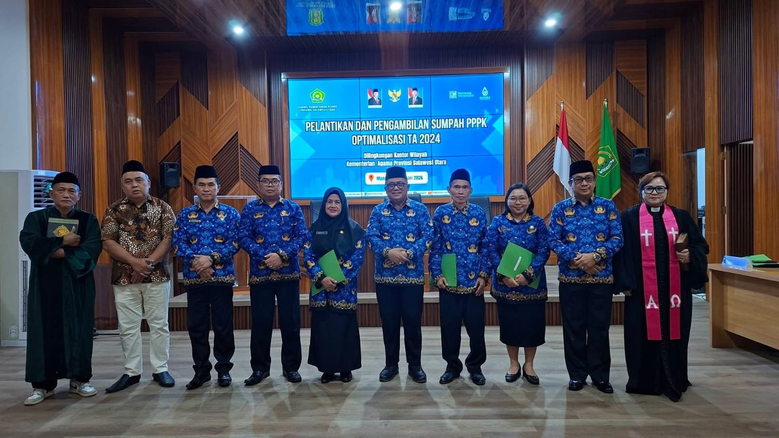 Manado-sulutone.co.id-Kepala Kantor Wilayah Kementerian Agama Provinsi Sulawesi Utara, H. Ulyas Taha, secara resmi mengambil sumpah dan melantik Pegawai Pemerintah dengan Perjanjian Kerja (PPPK) hasil optimalisasi Tahun Anggaran 2024. Kegiatan tersebut dilaksanakan di Aula Kanwil Kemenag Sulut, Kamis (05/02/2026), dalam suasana khidmat dan penuh rasa syukur.