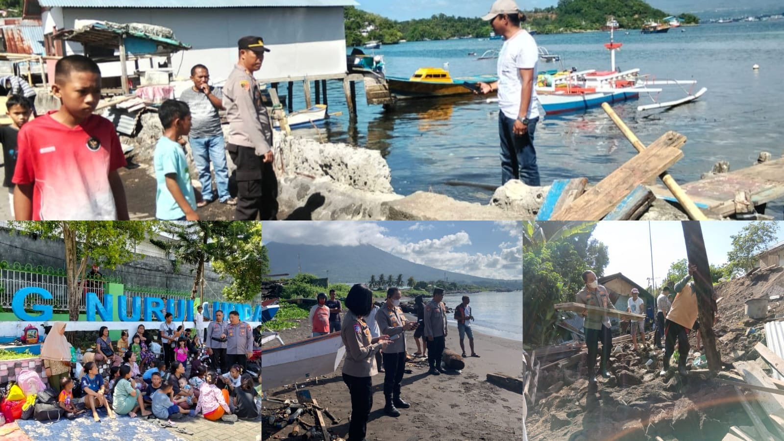 Di wilayah kepulauan Lembeh, sejumlah kerusakan rumah warga juga terpantau, seperti atap roboh dan dinding retak, namun seluruhnya dilaporkan tanpa korban jiwa. Aktivitas masyarakat di sejumlah titik, termasuk kawasan perikanan, masih berjalan normal dengan pengawasan aparat.